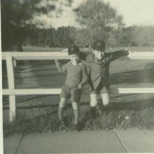 As service people, returned from overseas service, we could avail ourselves of a low interest loan for housing purposes ---- we did this as mentioned earlier, and had a small house built in Rosanna, about 10 km from the centre of Melbourne, but actually then the absolute outskirts of the metropolis. And there we stayed until I had finished my medical course six years later. As we had decided that I would go into a country practice, about eight years after our marriage, we sold that house and moved to Tongala (140 miles away) accompanied by our family cat and Peter who had by this time, put in an appearance. In Tongala, for the first few years we lived in a house that we rented from the local hospital ---- fairly basic --- outside toilet which for the first few years was serviced by the “nightcart man” but after a while the hospital committee decided to install a septic tank. Some years later, we bought quite a large area on the fringe of the township and engaged a local builder to build a house designed by an architect (in retrospect he was a bit of a bushranger). We had farms alongside and Peter (and Graeme and Ian who had arrived on the scene), could be quite interested in the cows and calves next door. Television had just come to Australia in time for the 1956 Olympic Games and we had installed a 130 steel mast with 30 feet of antennas on the top, with which we could watch the primitive TV programmes from Melbourne. Tthere was a regional station in Shepparton (about 60 miles away) but its programmes were lousy.